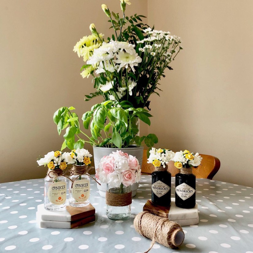 Today, I finally got round to up-cycling some miniature gin bottles that I have been been holding on to. In fact, for the two Conker gin bottles, this is there second up-cycle as they had previously been used as diffusers!